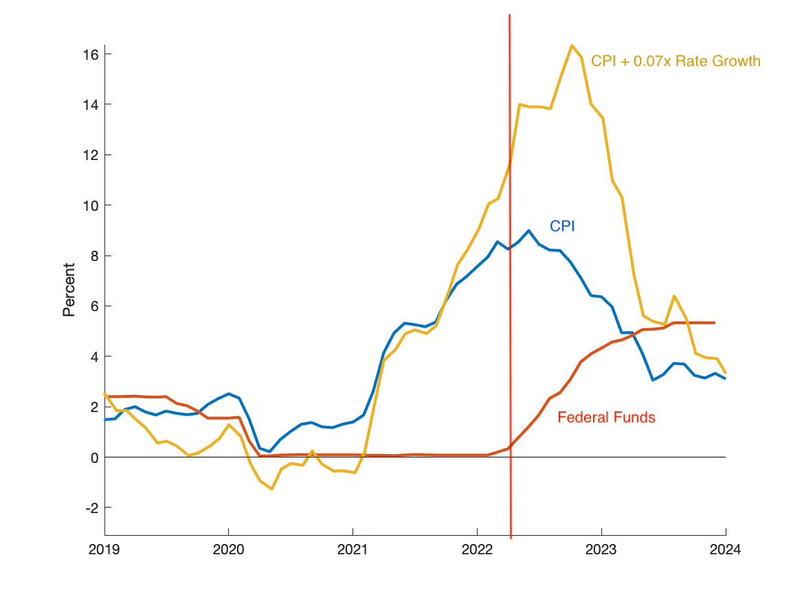 If you like the interest rate adjusted measure of CPI, you capture something quite common in the zeitgeist: Interest rates are a cost, and raising interest rates almost mechanically raises inflation for a while.