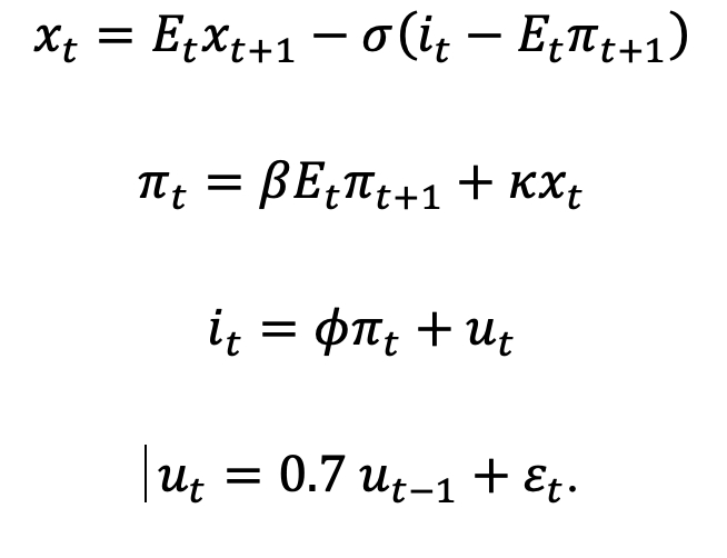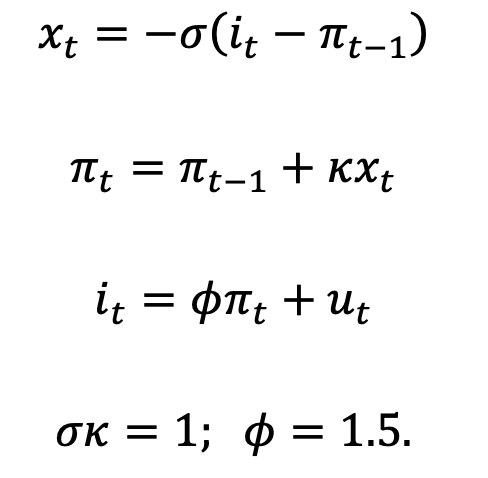 They call the disturbance u a “supply” shock. Well, you can see how a rise in u is likely to produce a rise in inflation 𝜋. And a formal accounting will find that shocks to this equation do, in fact, account for much of the observed inflation. (Smets and Wouters [2024] is a good example.) This is not an independently measured economic event, it is merely a name for our ignorance.