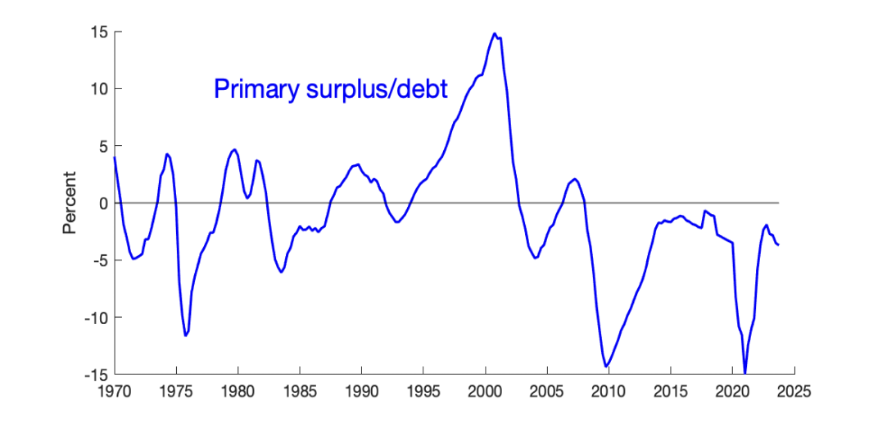 Figure 9. Primary surplus divided by federal debt held by the public.