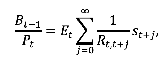 The fiscal theory of the price level gives a framework to understand how this fiscal blowout caused inflation. It states that the price level adjusts so that the real value of nominal debt equals the present value of primary surpluses (taxes less spending, not including interest costs on the debt) that pay back the debt. If stockholders see that dividends are unlikely to support the value of their stock, they try to sell, and drive down the stock price. If bondholders think that the US will not run surpluses sufficient to repay its debts, the bondholders try to sell too. They try to exchange bonds and money for goods and services, driving up the price level. Eventually the real value of debt is inflated back to what people think the government will repay.