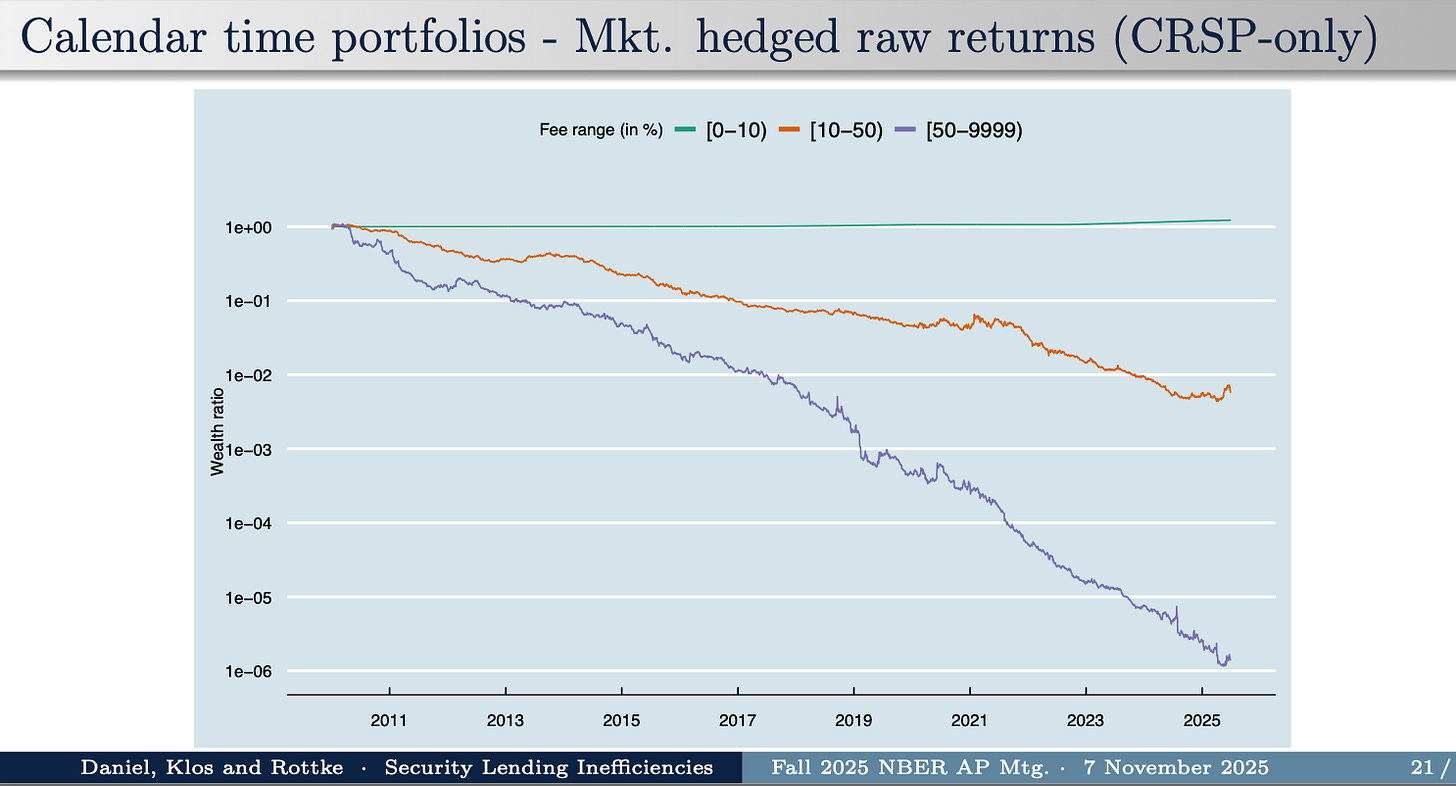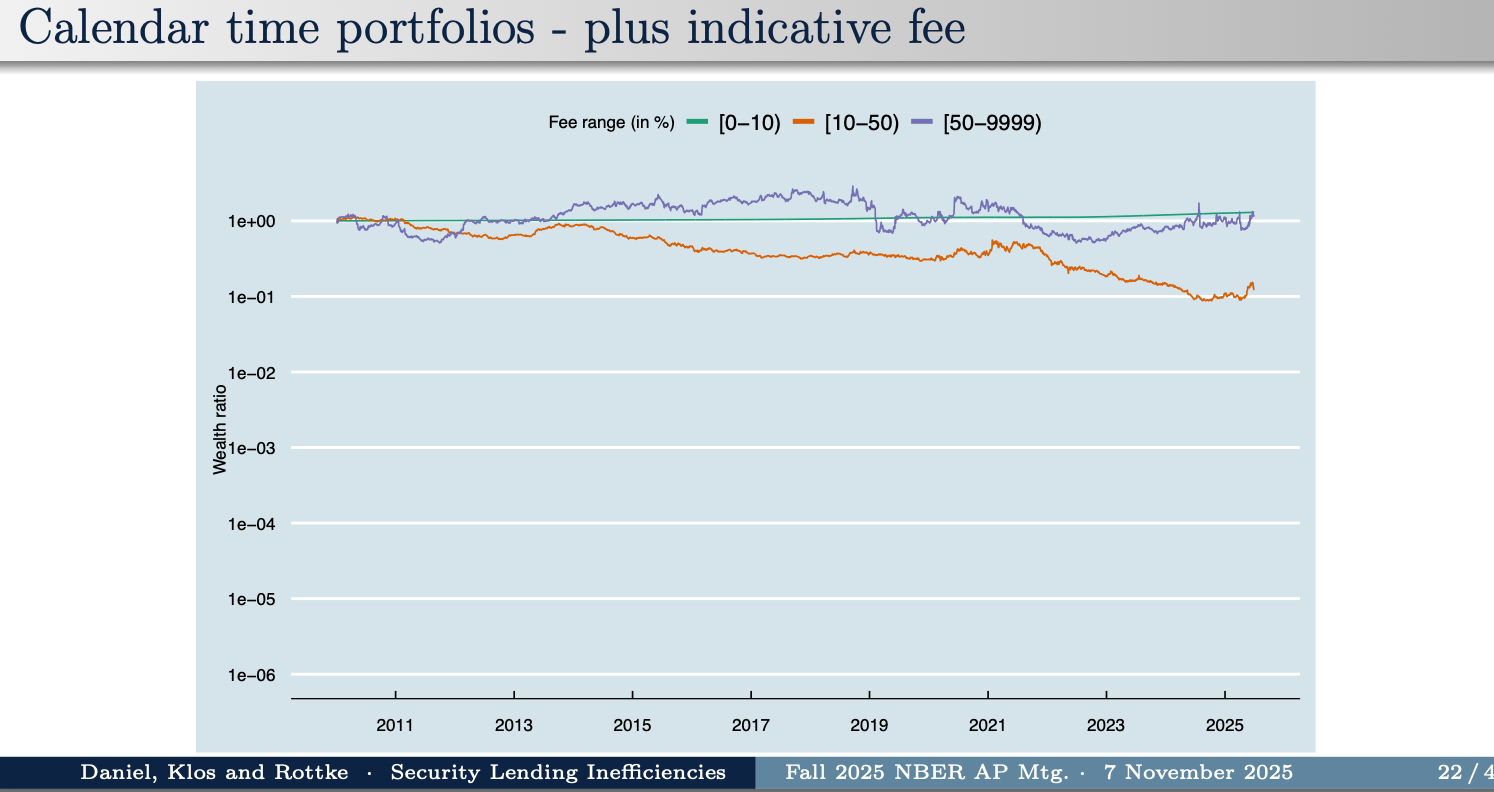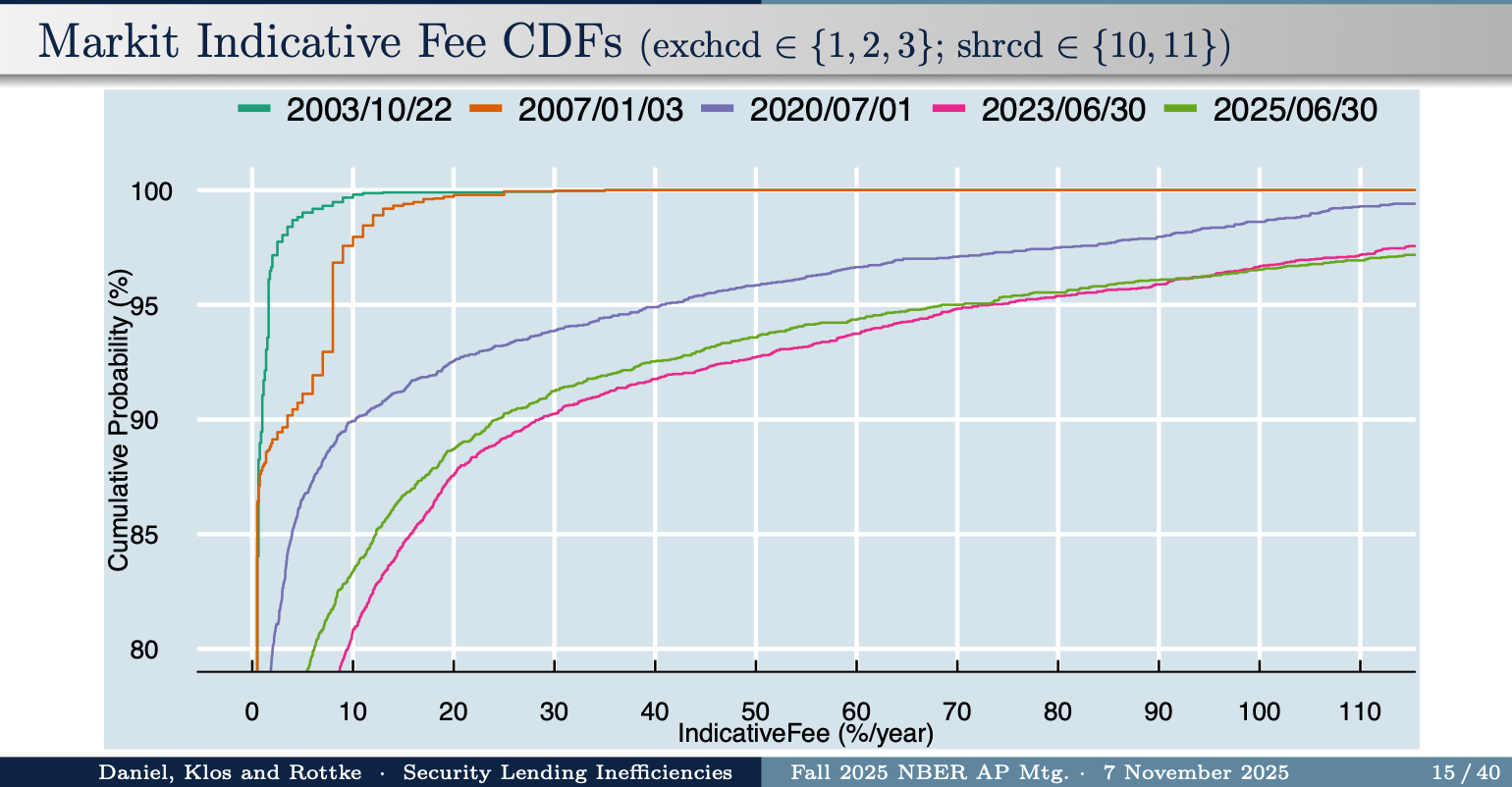 There was an interesting discussion whether extreme short-selling fees have gotten worse over time. They have in the data reported by Daniel et al.