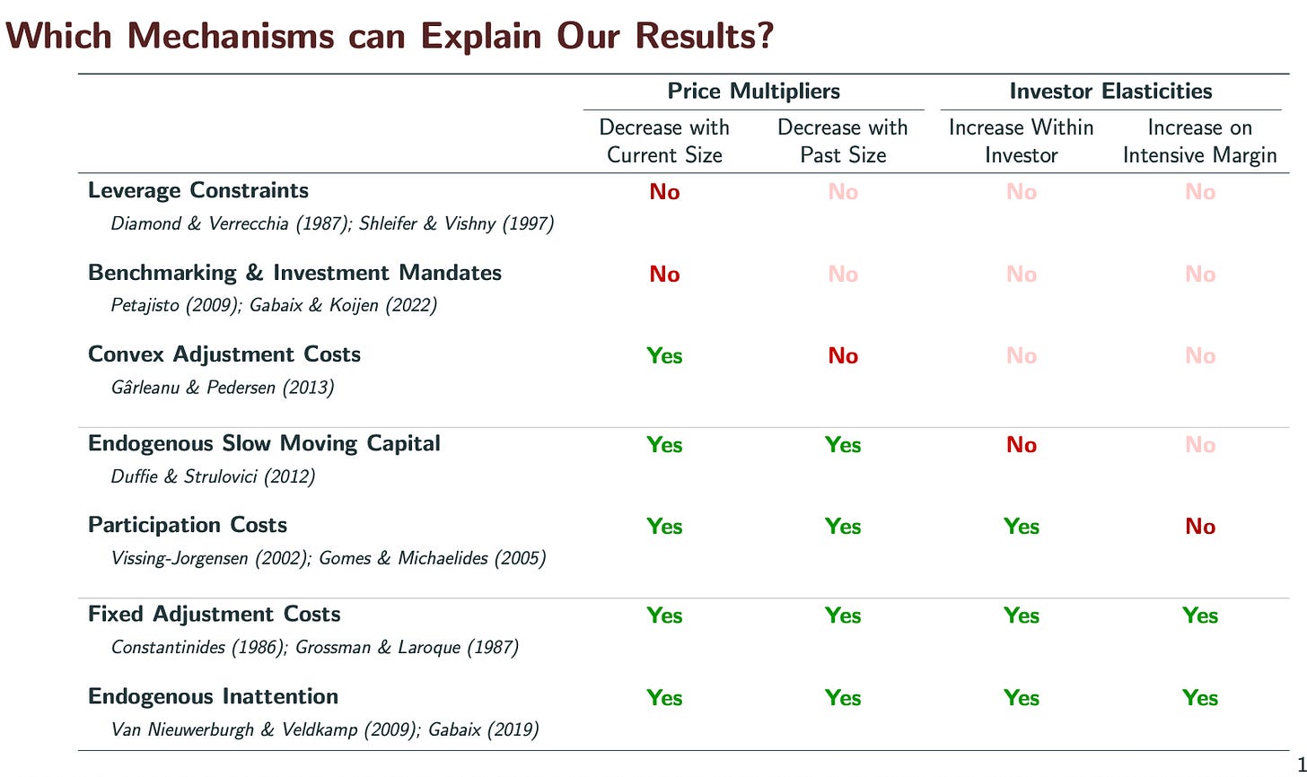 This finding tells us a lot about what the mechanism is. A natural conclusion: It isn’t worth people’s time on the other side of the trade to arbitrage 1% price rises, but maybe it is once prices rise more than that.