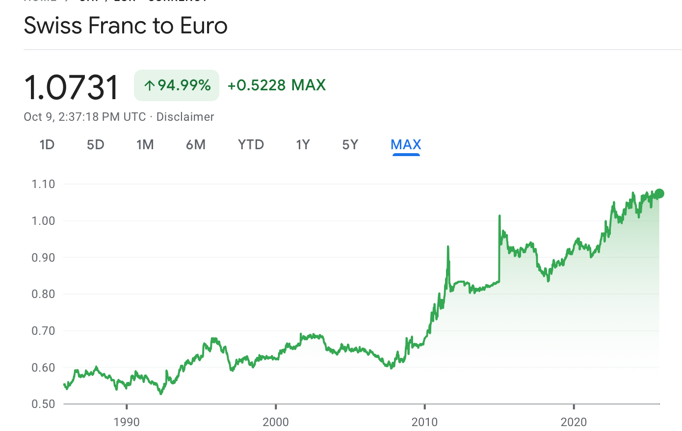 I am also softening a bit my standard economists’ disparagement of the school that says trade deficits and exorbitant privilege are bad, such as the Mar-a-Lago Accord and Stephen Miran’s essay. After all, the Swiss don’t want exorbitant privilege either.