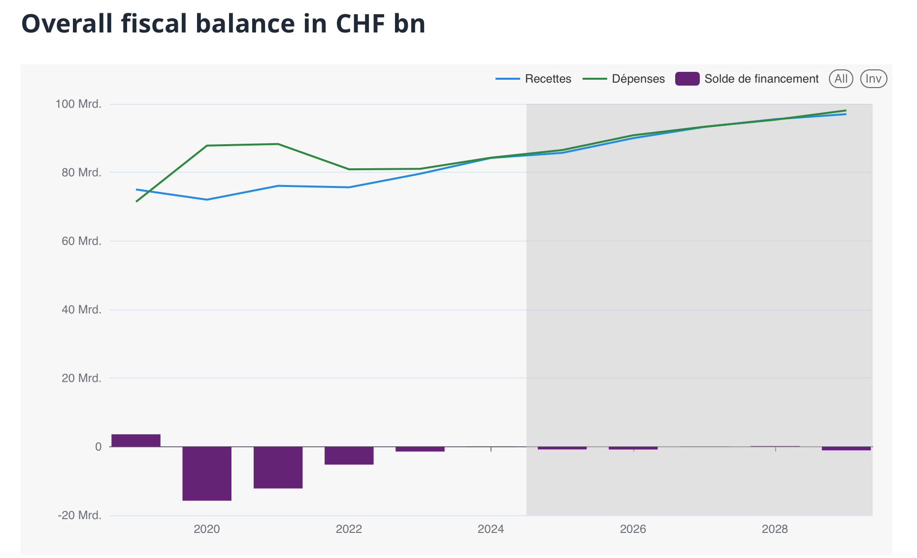 Balance is not just accidental. Switzerland has a constitutional “debt brake,” passed by referendum, that requires cyclical budget balance. They seem in no hurry to jettison it, as the Germans did when a few percent of GDP extra defense spending needs inconvenience half of GDP social spending.