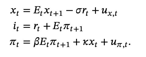 The model is the simple textbook new Keynesian model, with no FTPL funny business,
